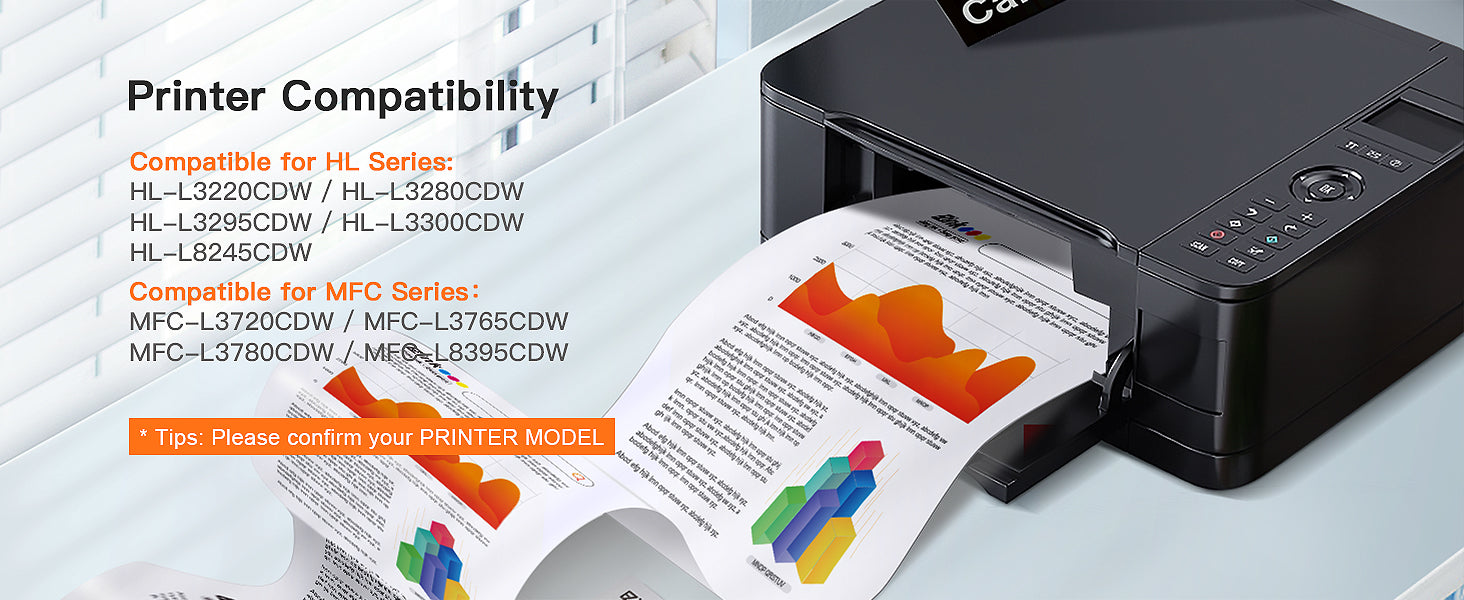 - Compatible Printers: Compatible with Brother HL-L3220CDW, HL-L3280CDW, HL-L3295CDW, HL-L3300CDW, HL-L8245CDW, MFC-L3720CDW, MFC-L3765CDW, MFC-L3780CDW, and MFC-L8395CDW Laser Printers