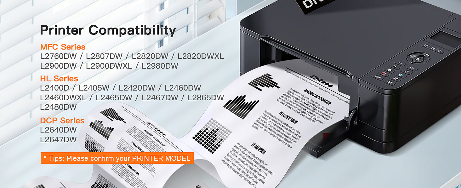 - Compatible For Brother HL-L2460DW, HL-L2405W, DCP-L2640DW, HL-L2400D, MFC-L2820DW, HL-L2420DW, HL-L2460DWXL, HL-L2465DW, HL-L2467DW, HL-L2865DW, HL-L2480DW, DCP-L2647DW, MFC-L2760DW, MFC-L2807DW, MFC-L2820DWXL, MFC-L2900DW, MFC-L2900DWXL, MFC-L2980DW printer.