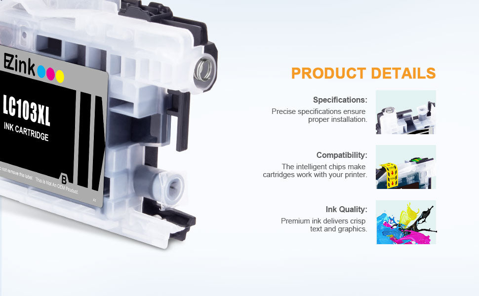 - E-Z Ink Pro LC103XL LC 103 is Compatible with Brother MFC-J870DW MFC-J875DW MFC-J245 MFC-J285DW MFC-J4310DW MFC-J4410DW MFC-J450DW MFC-J4510DW MFC-J4610DW MFC-J470DW MFC-J4710DW MFC-J475DW MFC-J650DW MFC-J6520DW MFC-J6720DW MFC-J6920DW DCP-J132W DCP-J152W DCP-J172W DCP-J4110DW DCP-J552DW DCP-J752DW