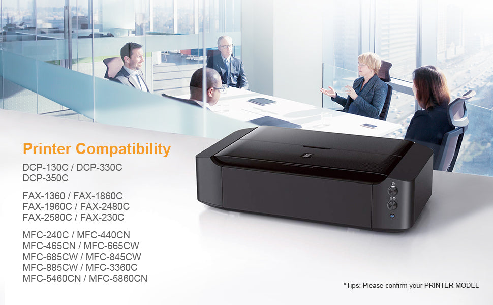 - Printer Compatibility: Brother DCP-130C, DCP-330C, DCP-350C, FAX-1360, FAX-1860C, FAX-1960C, FAX-2480C, FAX-2580C, FAX-230C, MFC-240C, MFC-440CN, MFC-465CN, MFC-665CW, MFC-685CW, MFC-845CW, MFC-885CW, MFC-3360C, MFC-5460CN, MFC-5860CN Printer