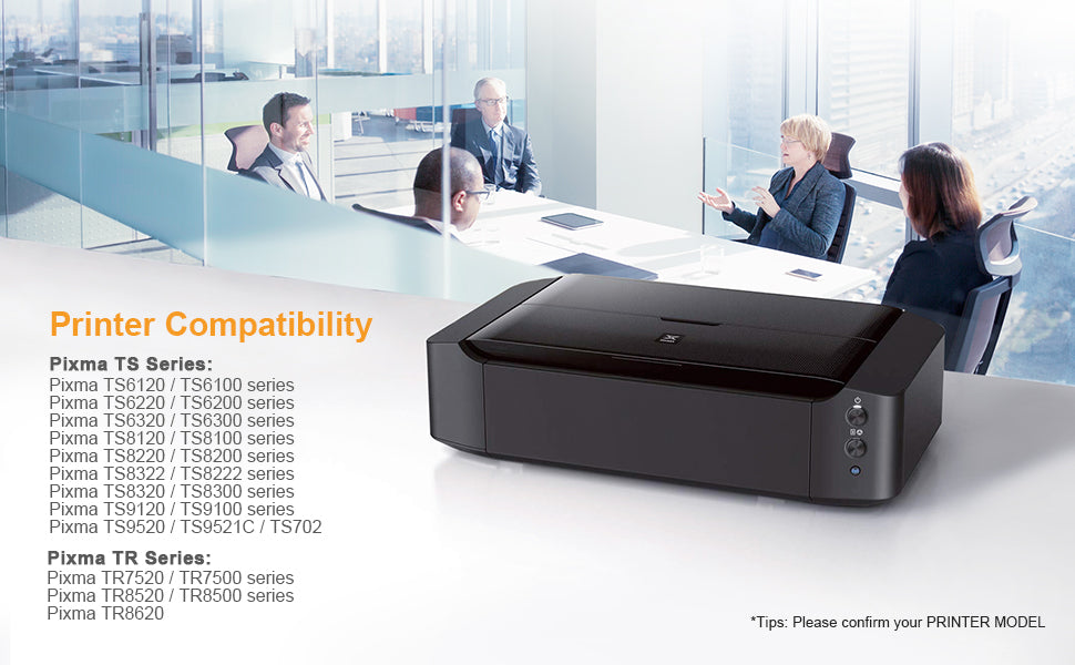 - Printer Compatibility: Canon TR7520, TR7500, TR7620, Pixma TR8520, TR8500, TR8620, TR8622 Pixma TS6100, TS6120, TS6200, TS6220, TS6300, TS6320,TS9520, TS9521C, TS702, Pixma TS8120, TS8100, TS8220, TS8200, Pixma TS8322, TS8222,TS8320, TS8300, TS9120, TS9100 Inkjet Printer