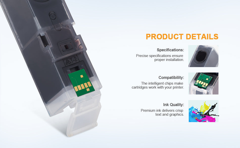 - Printer Compatibility: Canon TR7520, TR7500, TR7620, Pixma TR8520, TR8500, TR8620, TR8622 Pixma TS6100, TS6120, TS6200, TS6220, TS6300, TS6320,TS9520, TS9521C, TS702, Pixma TS8120, TS8100, TS8220, TS8200, Pixma TS8322, TS8222,TS8320, TS8300, TS9120, TS9100 Inkjet Printer