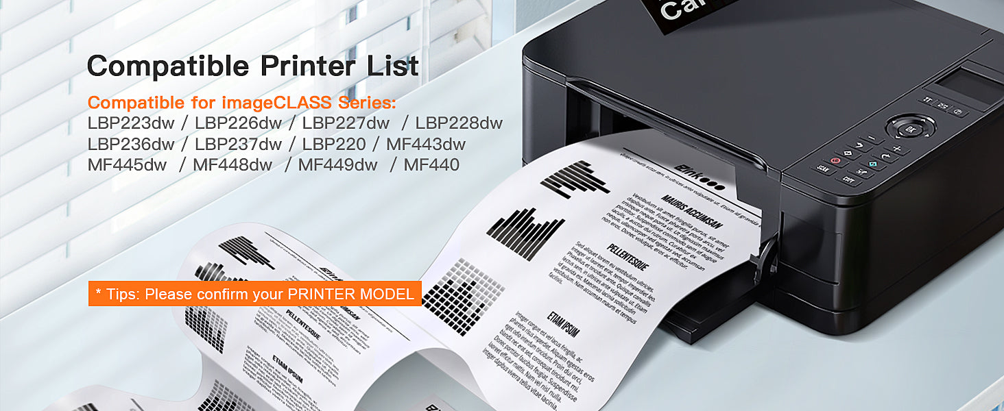 - Printer Compatibility:Compatible for Canon ImageCLASS MF445dw MF455dw MF448dw MF449dw MF443dw; Compatible for ImageCLASS LBP226dw LBP227dw LBP223dw LBP228dw LBP236dw LBP237dw; Compatible for ImageCLASS MF440 LBP220 series printer