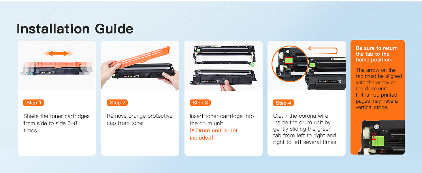 • Package Contents: 1 x user guide, 1 x TN229 black toner, 1 x TN229 cyan toner, 1 x TN229 magenta toner, 1 x TN229 yellow toner, total 4 pack of high yield TN229 toner cartridges