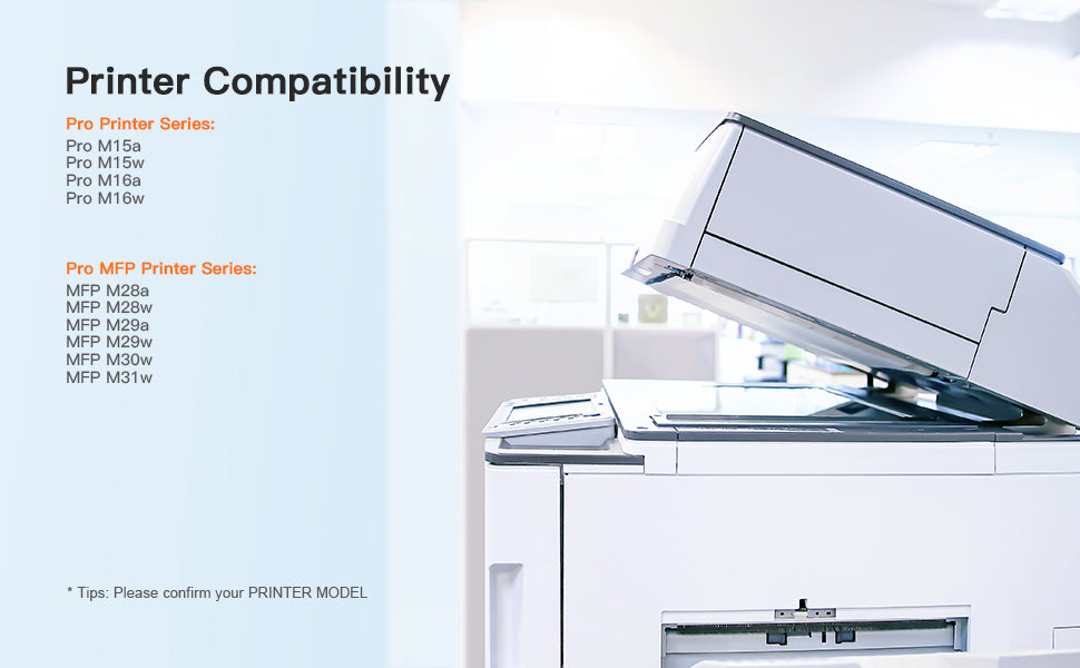 - Compatible Printers: HP LaserJet Pro M15w, LaserJet Pro M29w, MFP M28w, M28a, M29a M30w M31w M15a M16a M16w Printer