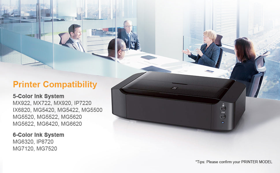- Printer Compatibility: Canon Pixma IP7220, Pixma IP8720, Pixma iX6820, Pixma MG5420, Pixma MG5422, Pixma MG5520, Pixma MG5522, Pixma MG5620, Pixma MG6320, Pixma MG6420, Pixma MG6620, Pixma MG7120, Pixma MG7520, Pixma MX722, Pixma MX922, Pixma MX920, Pixma MG5500, Pixma MG5622 Inkjet Printer