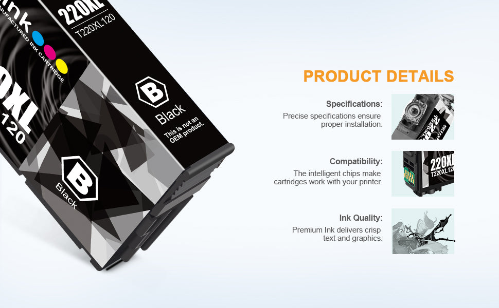 - Package Contents: 1 x User Guide, 2 x Black 220XL (Total 2 Pack) T220XL120