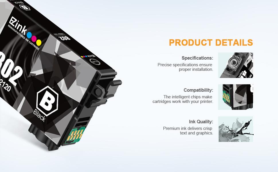 - Product Name: E-Z Ink remanufactured high yield ink cartridges replacement for Epson 802XL 802 XL T802XL T802 XL black ink cartridges