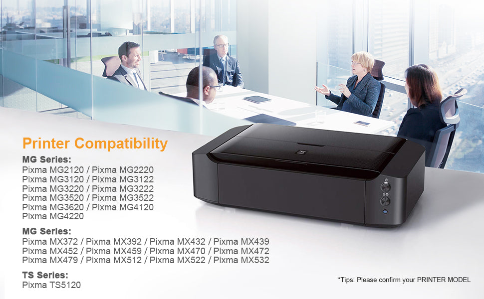 - Compatible Printers: Canon Pixma MG3620, MG3120, MG3122, MG3220, MG3222, MG3522, MG3520,MG2120, MG2220, MG4120, MG4220, MX372, MX392, MX432, MX439, MX452, MX459, MX470, MX472, MX479, TS5120, MX512, MX522, MX532 Printer