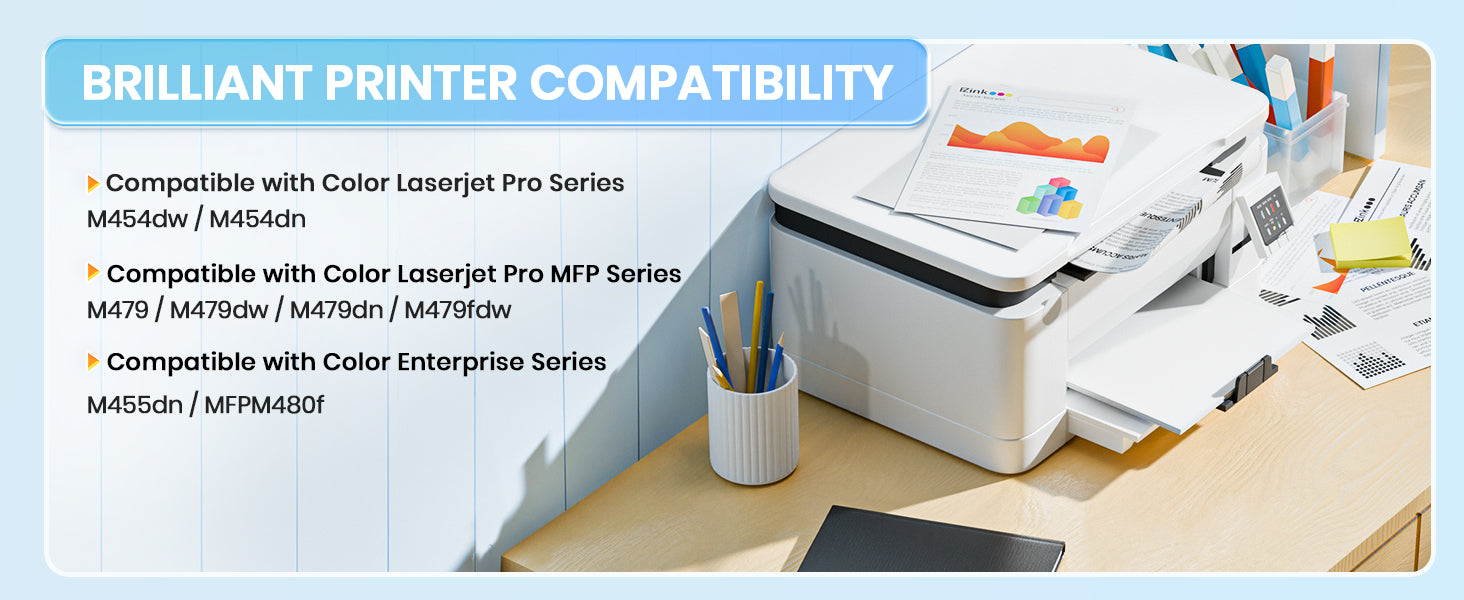 - This 414A cartridge works with: HP Color Laserjet Pro M454dw M454dn, Color Laserjet Pro MFP M479 M479dw M479dn M479fdw M479fdn, Color Enterprise M455dn MFP M480f laser printer